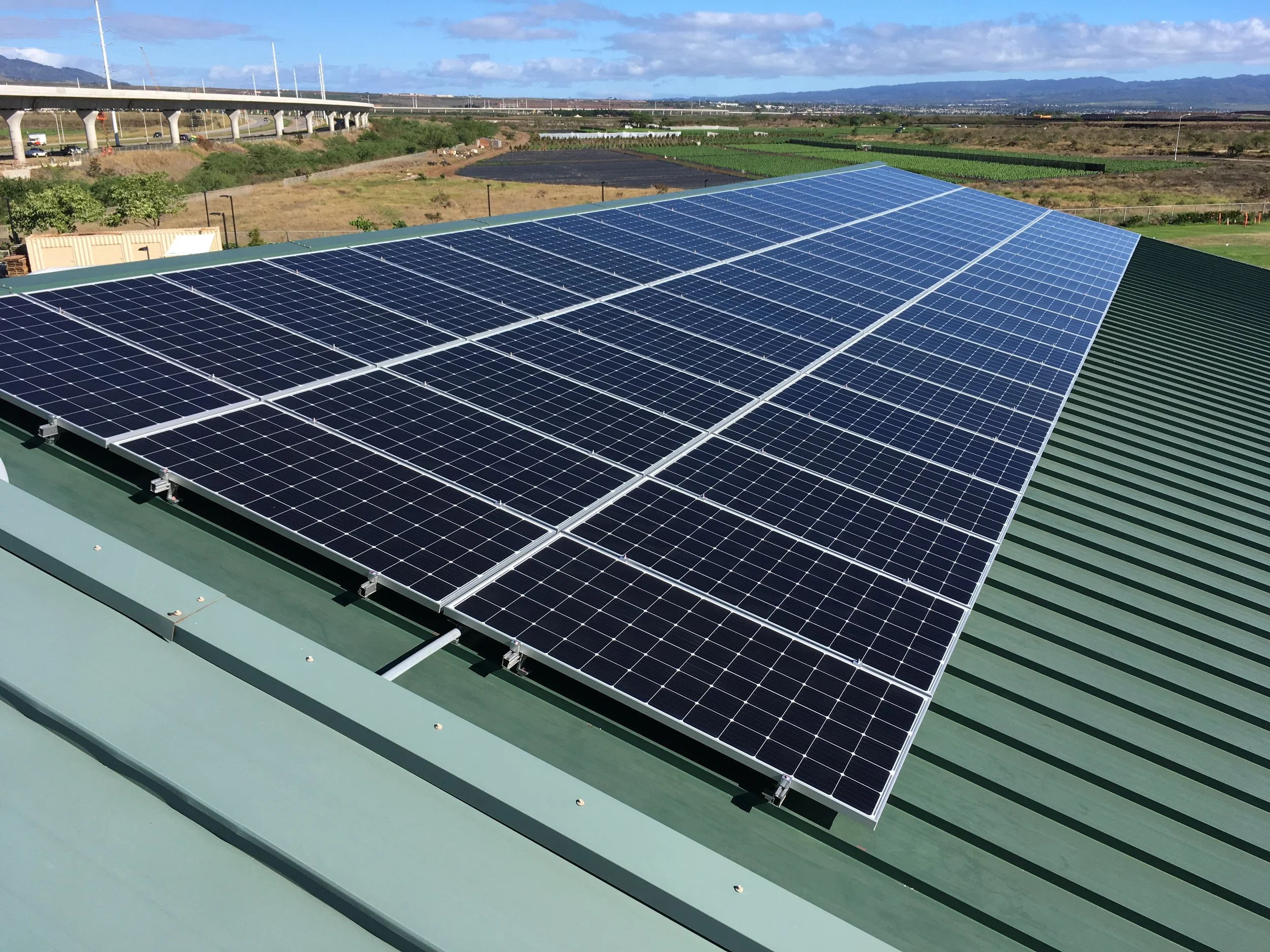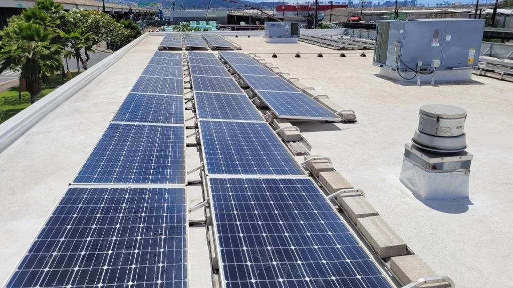 Alamo Mapunapuna, Oahu 2022. Commercial remove and reinstall. Customers were re-coating the roof during renovations. Job done for our friends at Radiant Electric.